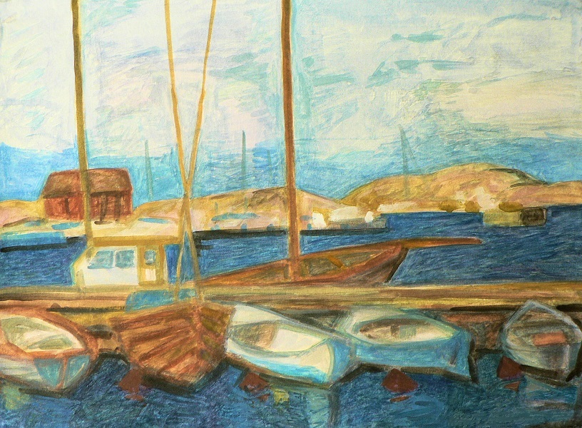Kolory niebiesko-zielone, które przyjęło się uważać za kolory zimne, nie są gorsze od kolorów ciepłych. Pierwsze bowiem tworzą dal zupełnie niedostępną palecie czerwieni, różów i żółcieni. To więc kwestia upodobań do tonacji, a nie waga, która musi przeważyć. Właśnie kolory chłodne przydają odczucia przestrzeni w małych pomieszczeniach. Czy to są smutne obrazy? Z łódką jej właściciela nie.